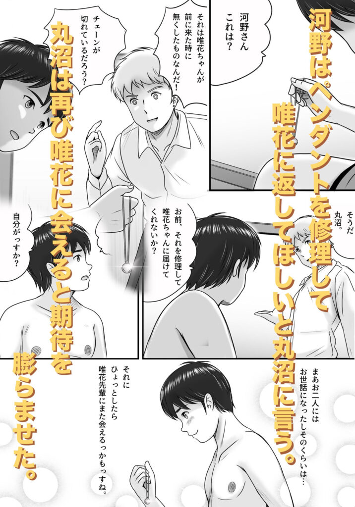 丸沼によると河野宅で唯花が無くしていたペンダントを見つけ、修理したので持参したいというのだ。